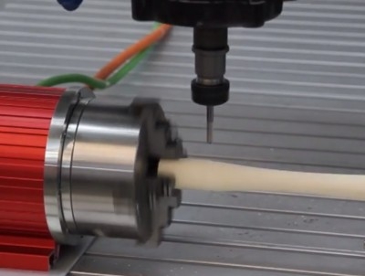 CNC obrada drva na 4-osnom CNC stroju s iSA2200 obradnom glavom i iRD 80 rotacijskom osi.